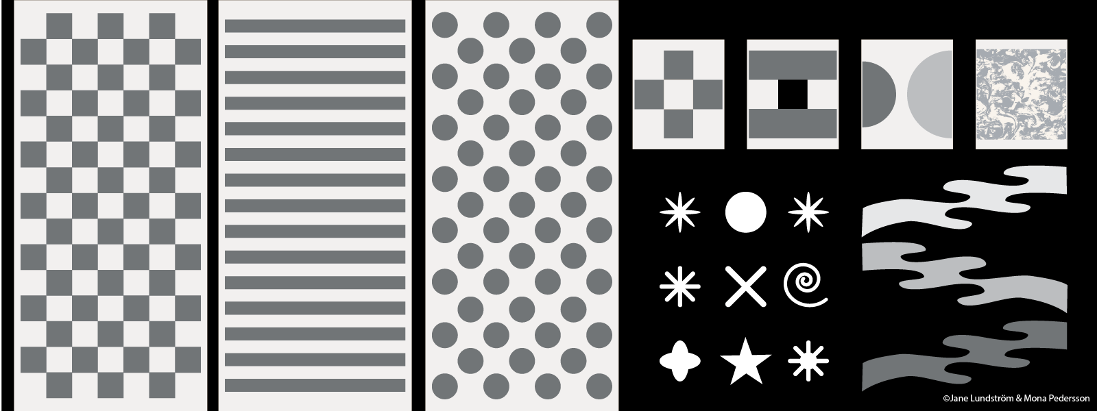 Med inspiration från 50-talets formspråk och grafiska uttryck har vi designat moduler, vepor, väggtextil, rumsdelare samt unika verk.
