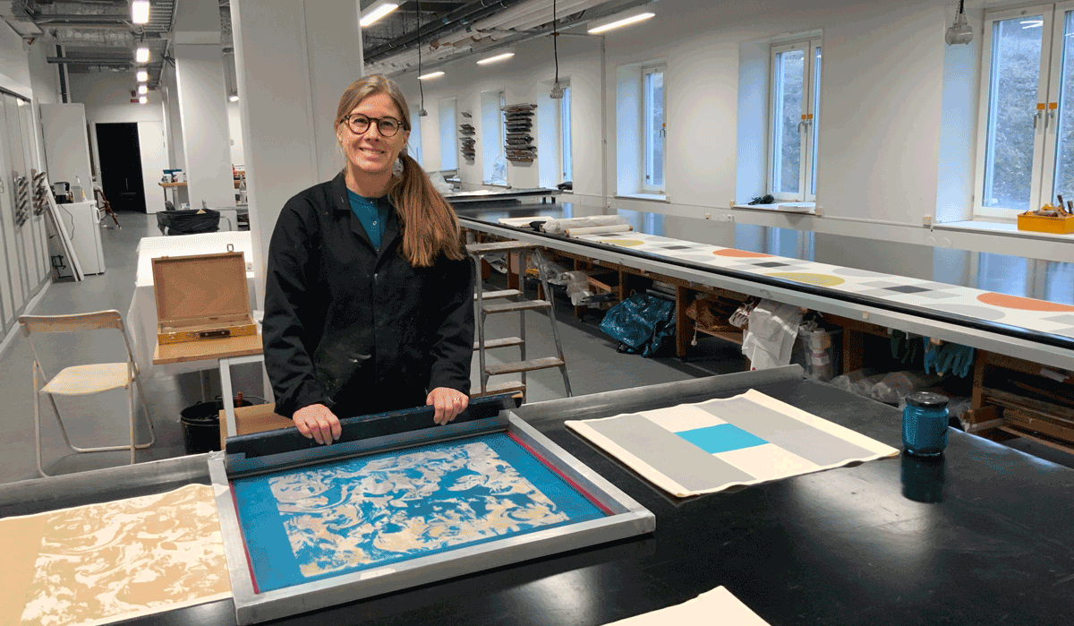 Vi screentrycker "Print on demand" för hand på Konstnärernas Kollektivverkstad i Farsta.