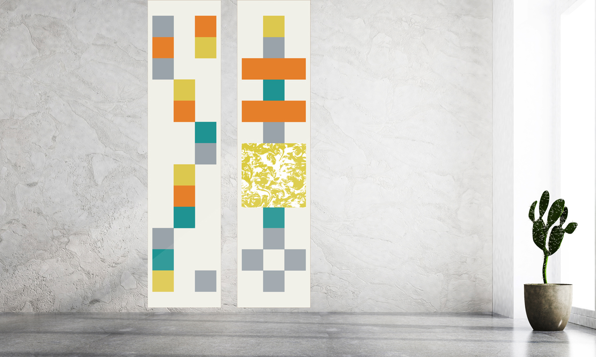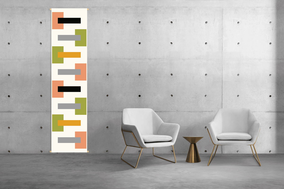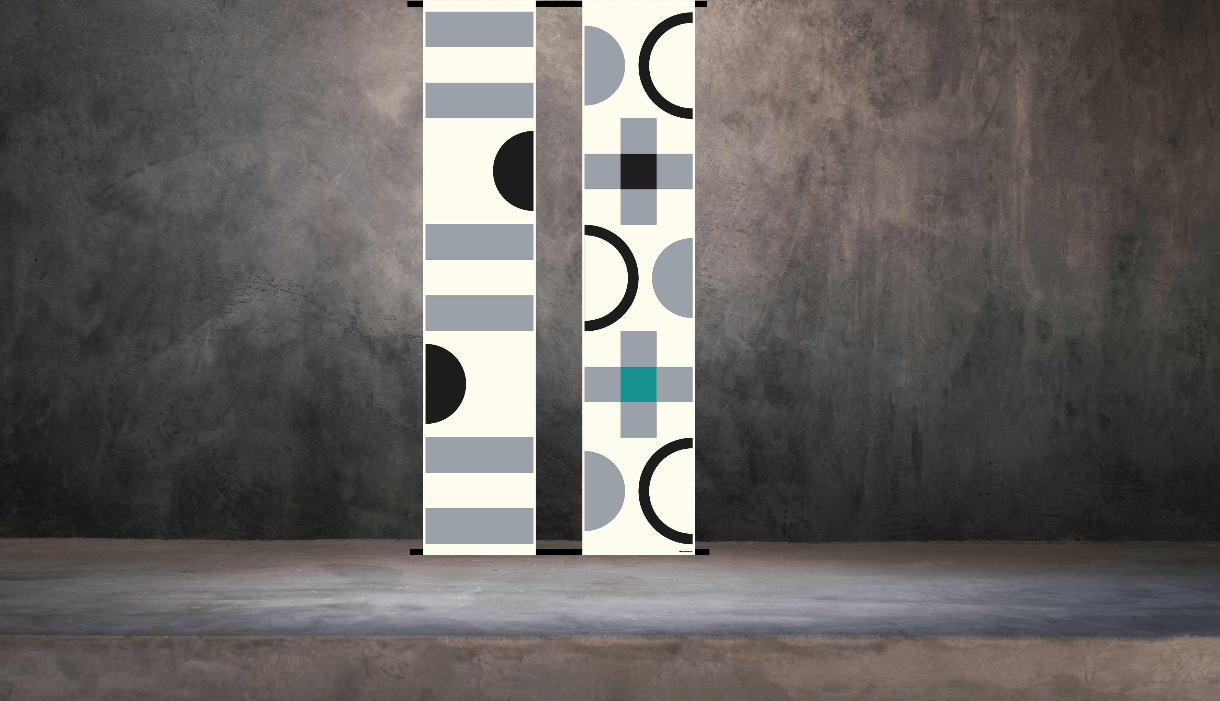 Med inspiration från 50-talets formspråk och grafiska uttryck har vi designat moduler, vepor, väggtextil, rumsdelare samt unika verk.